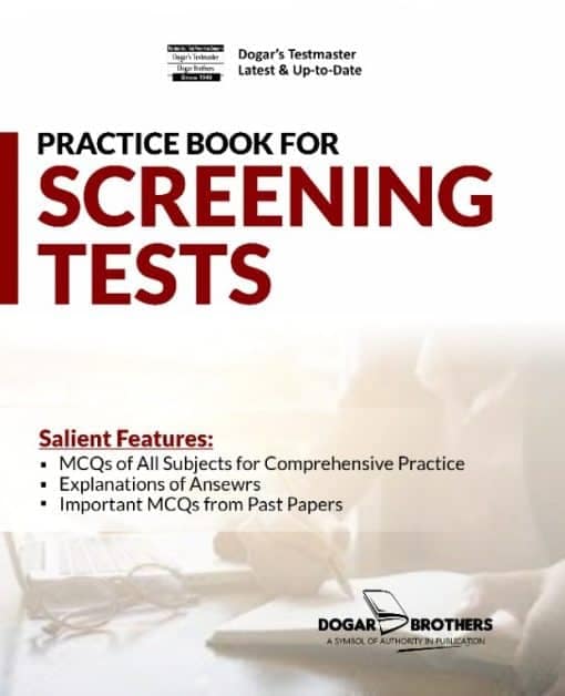 Practice Book for Screening Tests by Dogar Brothers is available here. Home delivery is available. Place your order now. Book will be sent to you by courier within 5 to 7 working days. Pay cash on delivery.